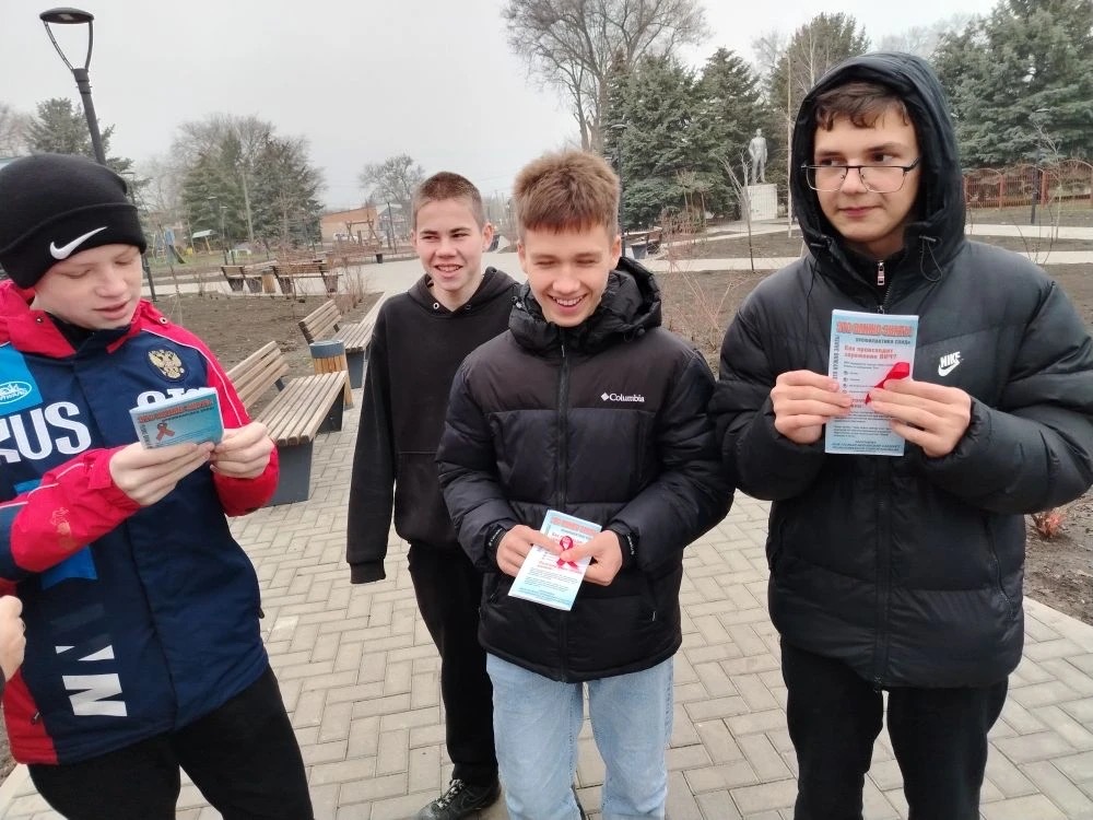 Работники ДК раздавали учащимся международный символ осознания людьми важности проблемы СПИДа — красные ленточки. Прикрепив такую ленточку к груди, каждый выразил свою солидарность с теми, кого затронула эта проблема, и поддержал идею здорового и безопасного образа жизни.