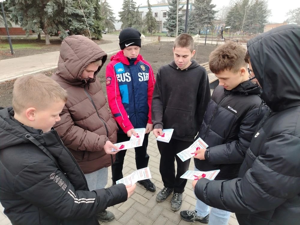 Работники ДК раздавали учащимся международный символ осознания людьми важности проблемы СПИДа — красные ленточки. Прикрепив такую ленточку к груди, каждый выразил свою солидарность с теми, кого затронула эта проблема, и поддержал идею здорового и безопасного образа жизни.