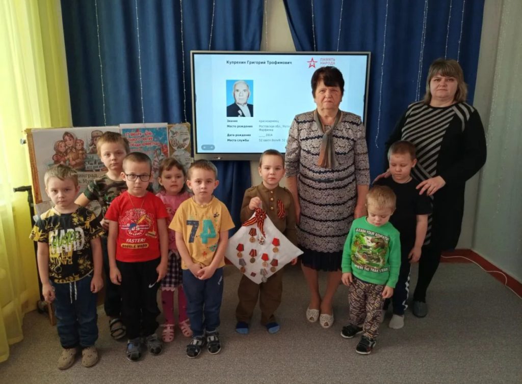 Эта история, переданная через поколения, тронула сердца всех присутствующих. Она показала, что память о героях живет не только в книгах и архивах, но и в семейных преданиях, в рассказах отцов и дедов. Три поколения – дочь, внук и правнук — хранят и чтят память о герое-ветеране Купрехине Григории Трофимовиче. Уроженец села Марфинка, красноармеец 1914 года рождения, он прошел войну достойно, заслужив высокие награды: медаль «За боевые заслуги», медаль «За отвагу» и Орден Отечественной войны 2 степени.