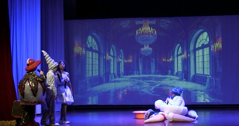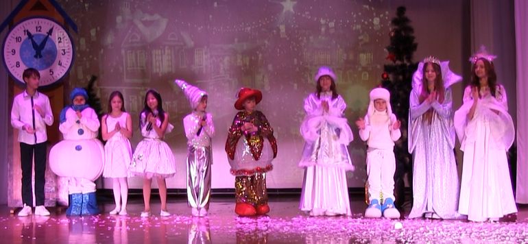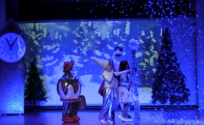Яркие декорации, красочные костюмы сразу же погрузили зрителей в атмосферу волшебства. Добавили сказочности и феерии в меняющийся сюжет интерактивные заставки на экране, сказочный снег и танец маленьких снежиноктанцевального коллектива «Искорки».