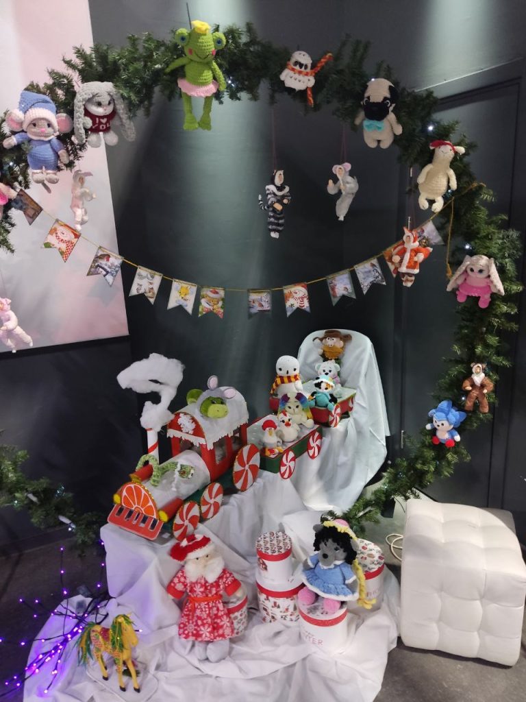 Посетители выставки могли увидеть огромное количество вещей, изготовленных в различных техниках: от вязаных игрушек и открыток в технике скрапбукинг до оригинальных светильников и изысканных картин. Фотозона также была оформлена авторскими игрушками сотрудников Центра.