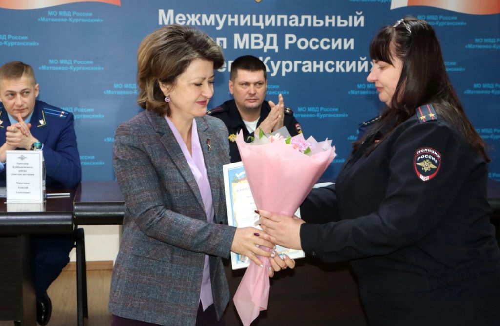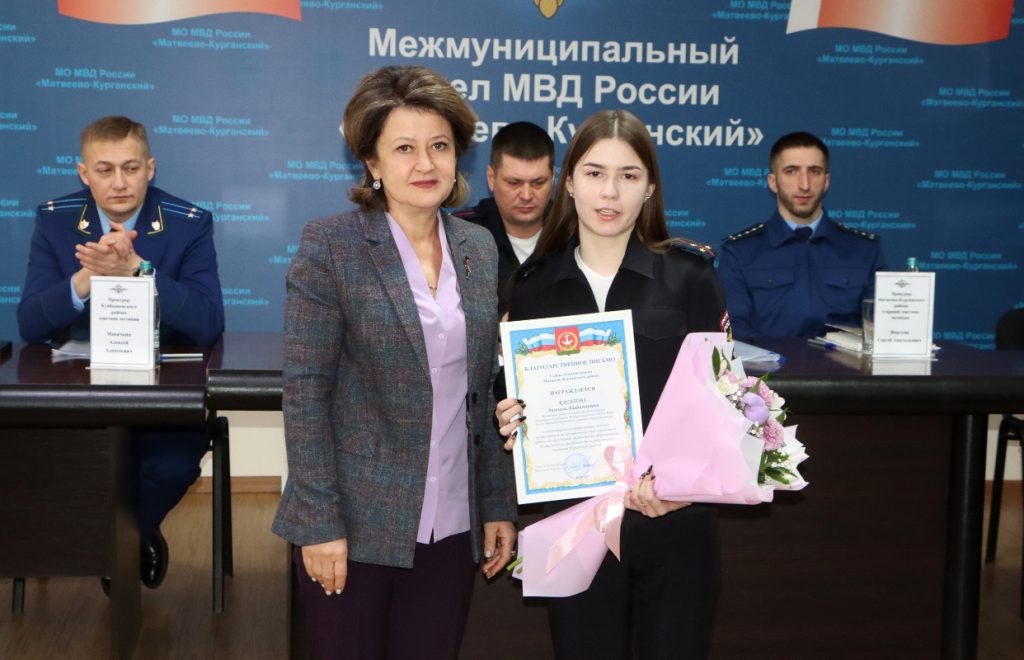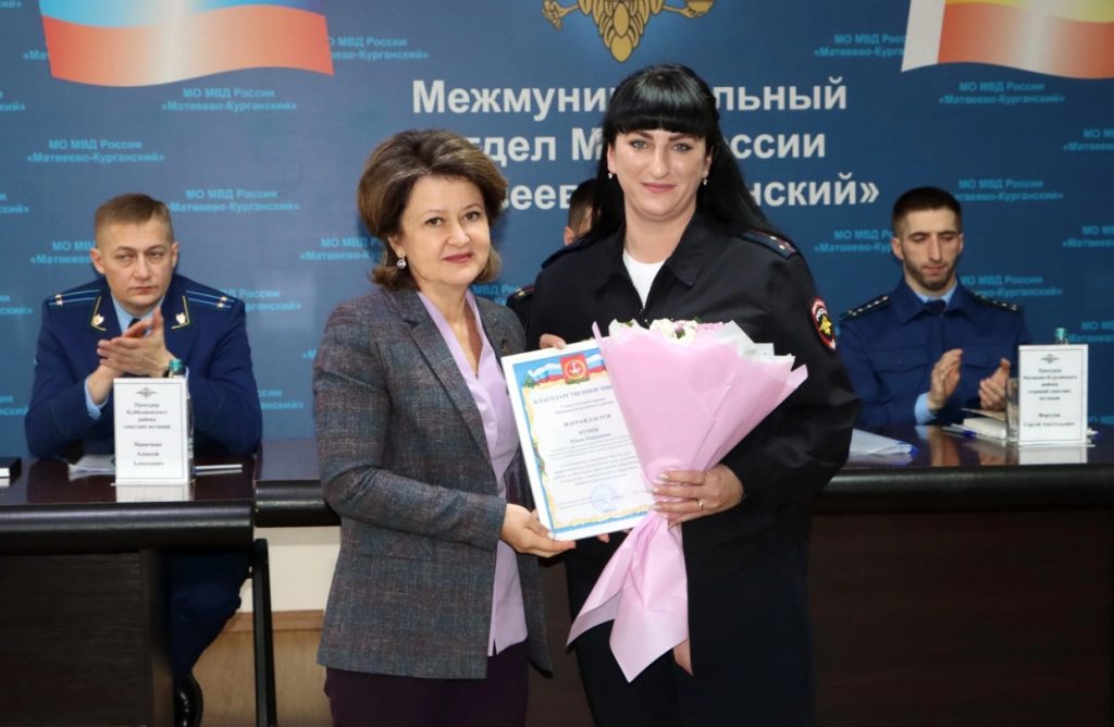 Глава муниципалитета Дина Алборова поздравила отличившихся представителей полиции и вручила благодарственные письма.