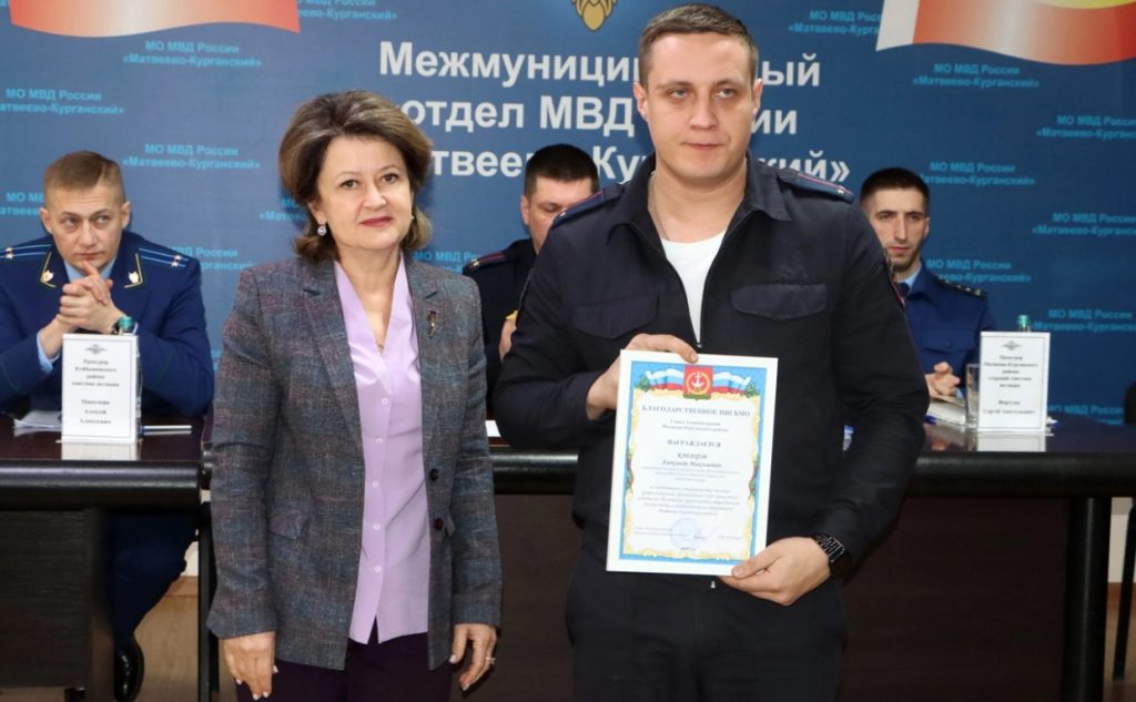 Завершая официальную часть мероприятия, начальник Межмуниципального отдела МВД «Матвеево-Курганский» Николай Гоголь выразил благодарность сотрудникам, отметив наградами и званиями.