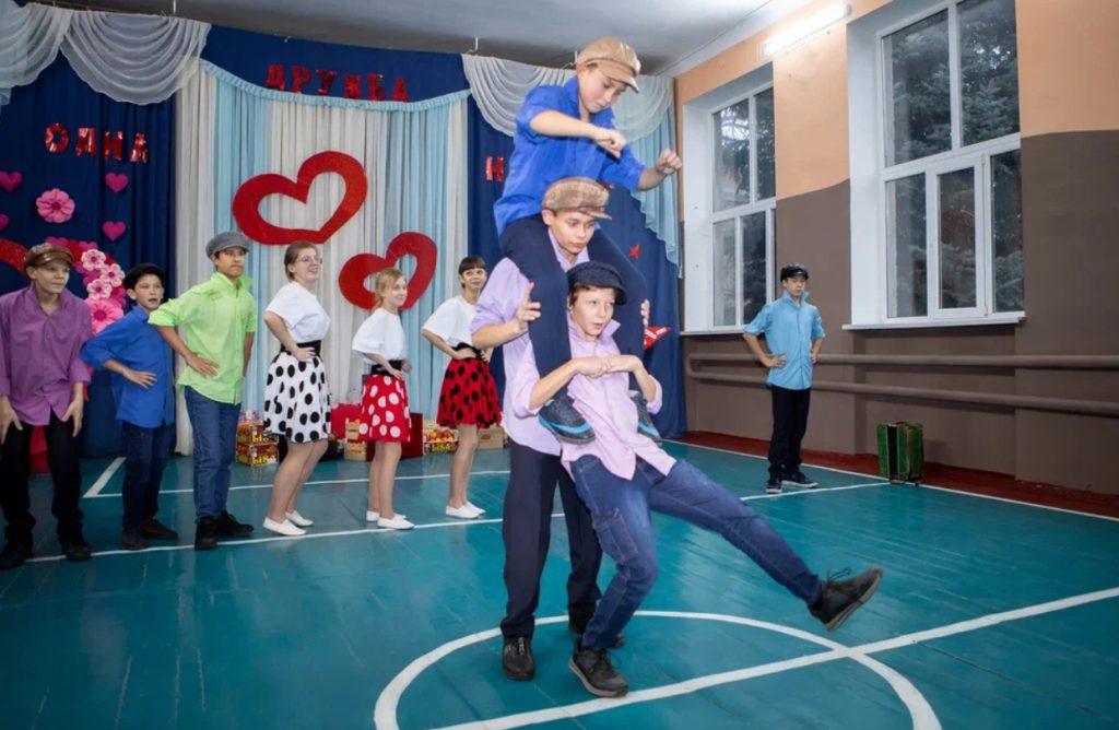 Школьный зал был украшен очень празднично и в зале собрался весь коллектив школы-интерната. Дети и педагогические работники подготовили запоминающееся мероприятие, посвященное дружбе и хорошему настроению.