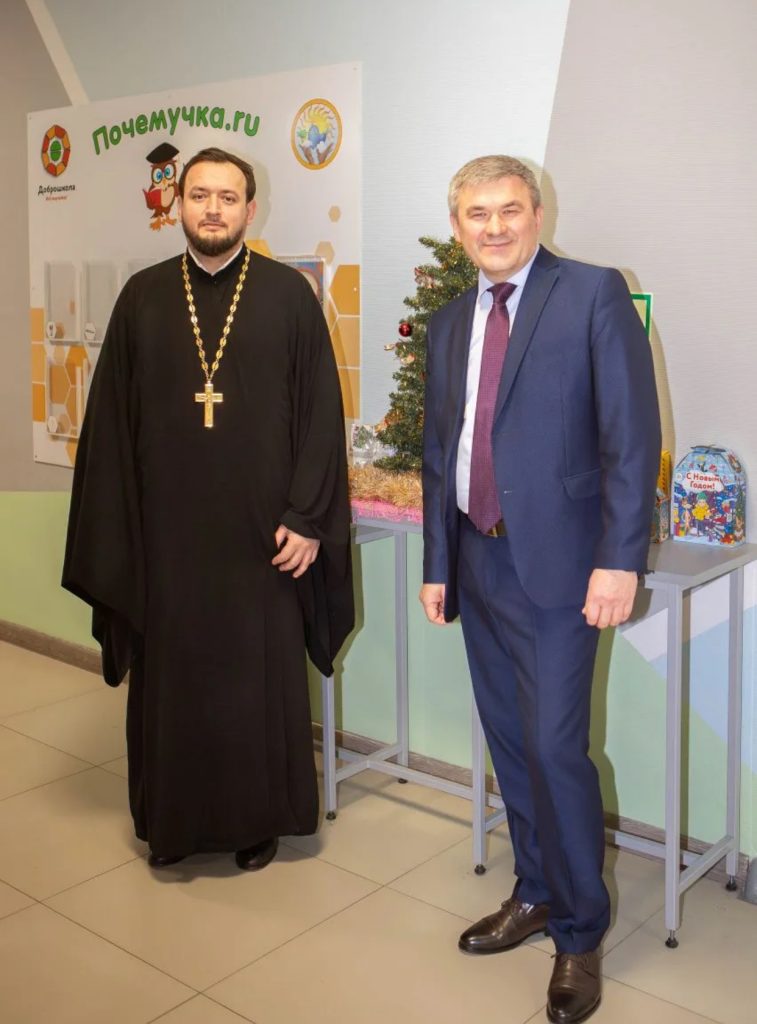 Представители местного отделения партии «Единая Россия» И.В. Грунтовская, Л.И. Макина,руководитель ЦСЗ – М.Б. Аксенова, настоятель храма святого праведного Павла Таганрогскогоотец Евгений.