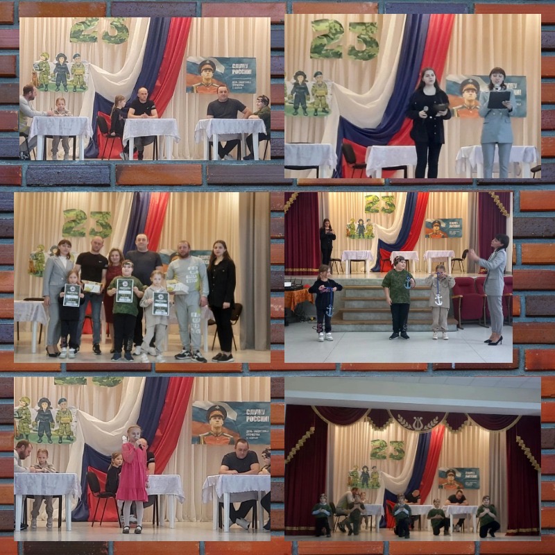 В конкурсе приняли участие семьи: Замшиных пап Юрий Валентинович и дочь Алиса, семья Столбуновых папа Александр Александрович и дочь Есения и семья Шимченко Виталий Владимирович и сын Клим. В ходе программы участники познакомились с историей праздника. Их ждали весёлые конкурсы на скорость и ловкость, ребята состязались в силе и выносливости, быстроте реакции. Проявляли сноровку в конкурсах: «Взлетная полоса», «Поднять якорь», «Спец. Подготовка», Сапёры», и многих других. Между конкурсами прозвучали песни об армии, о Родине, о Защитниках отечества, в исполнении участников художественной самодеятельности дома культуры. Бурными аплодисментами зрители встретили танцевальный коллектив «Джентельмены с танцем «Граница».
