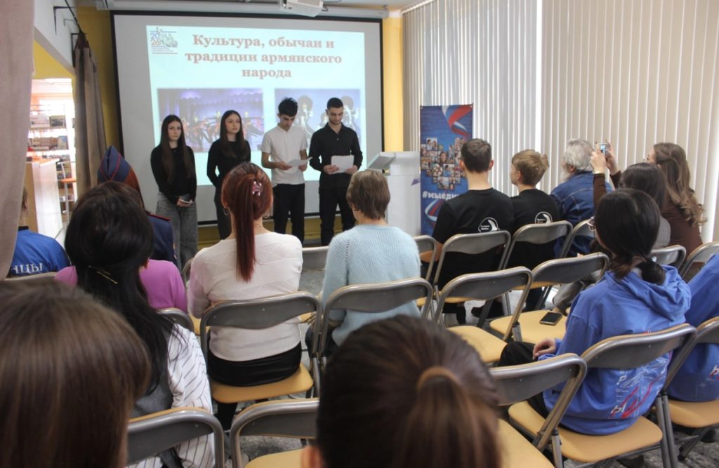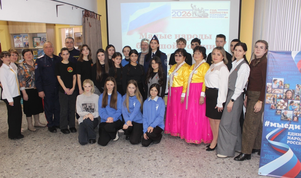 В Центральной библиотеке поселка Матвеев Курган состоялся настоящий праздник дружбы и взаимопонимания – калейдоскоп культур «Малые народы большой России». Это событие, приуроченное к началу Года единства народов России, стало ярким подтверждением того, как богата и многогранна наша страна. На встрече собрались представители разных поколений и культур: учителя и ученики МБОУ Матвеево-Курганской СОШ № 3 имени Героя Советского Союза А. М. Ерошина, активисты местного отделения «Движение Первых» вместе с наставником Натальей Владимировной Быковой, казаки и кадеты казачьей детско-молодёжной организации «Донцы» Матвеево-Курганского юрта, представители корейской диаспоры, а также местные поэты.