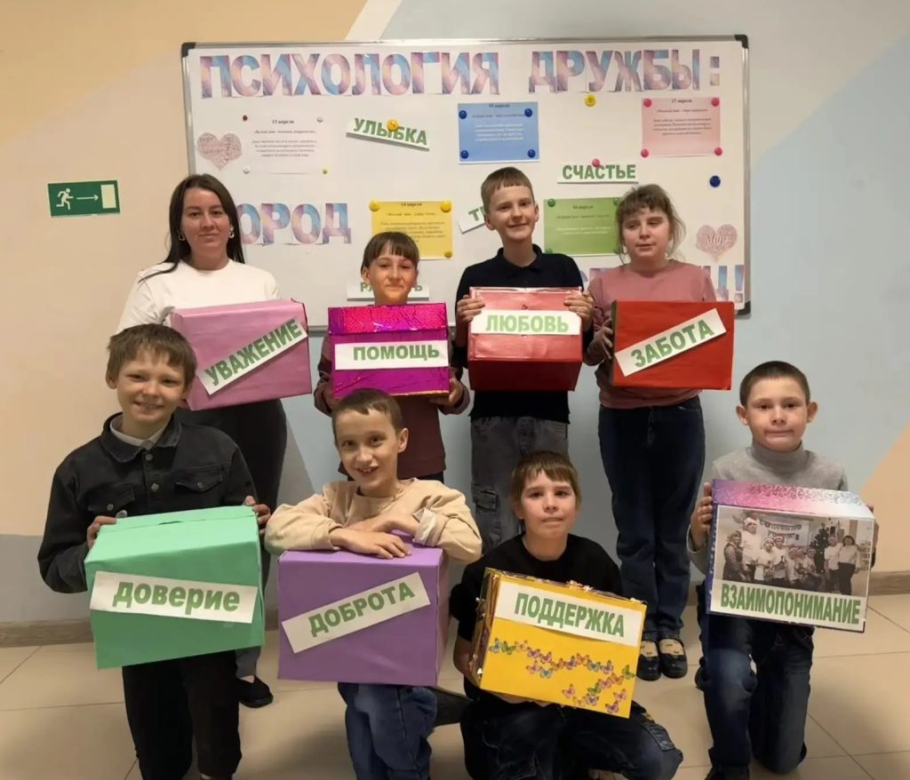 дружбы и поддержки. Ученики 6–8 классов участвовали в игре-викторине, посвящённой вопросам психологии взаимоотношений и взаимопомощи. Кульминацией дня стало оформление «Стены признаний», где каждый мог оставить тёплые слова и пожелания.