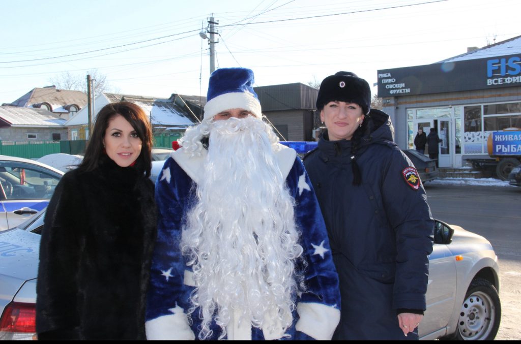 Необычный патруль останавливал автомобилистов, чтобы вручить подарки и поздравления.