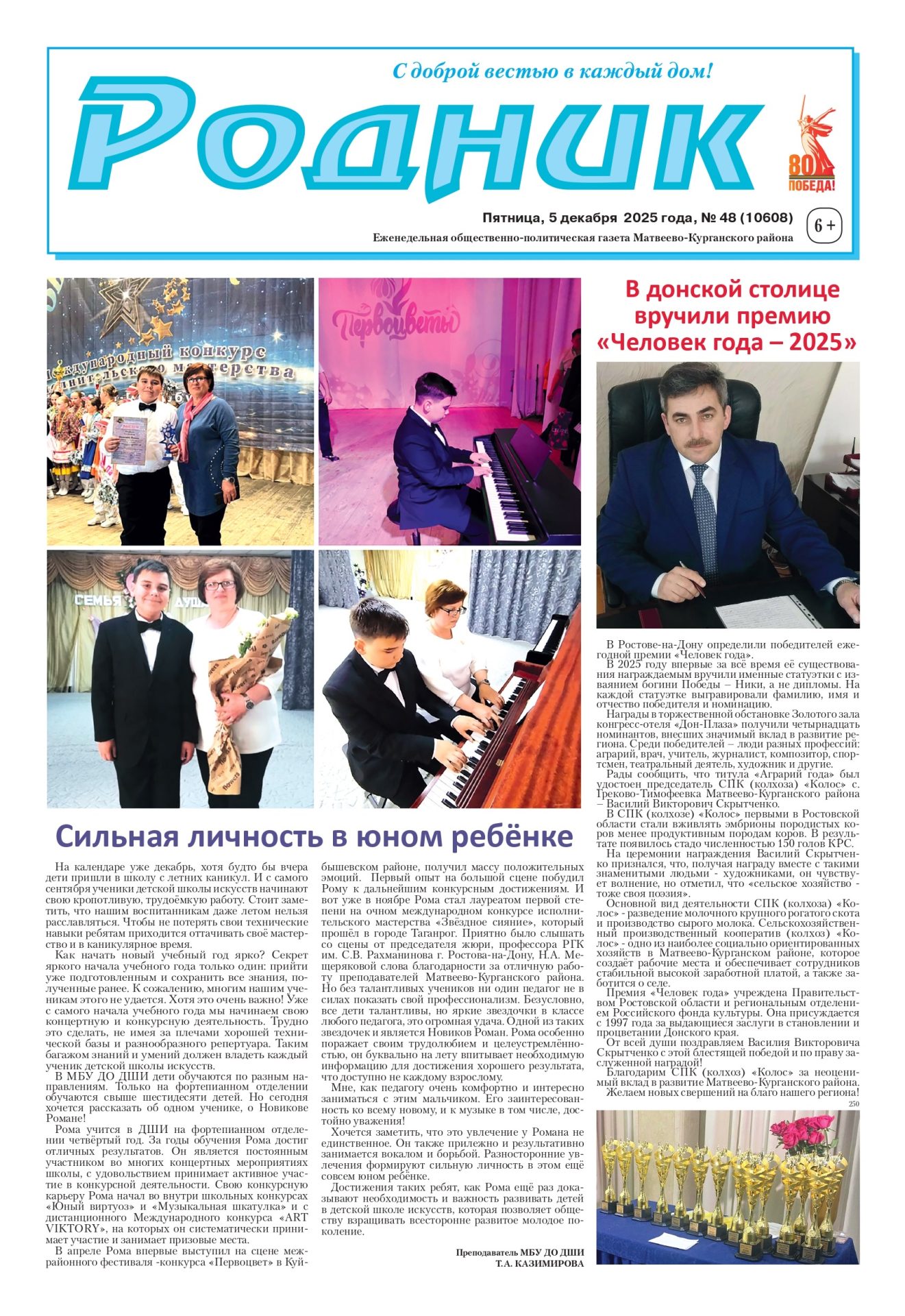 В Ростове-на-Дону определили победителей ежегодной премии «Человек года». Стр. 1.