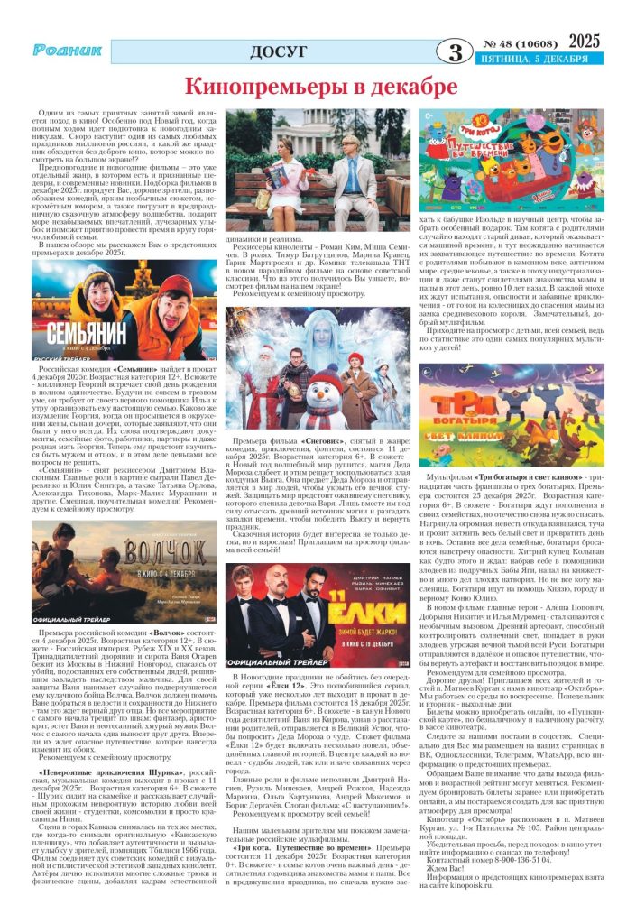 Кинопремьеры в декабре в кинотеатре «Октябрь». Стр. 3.