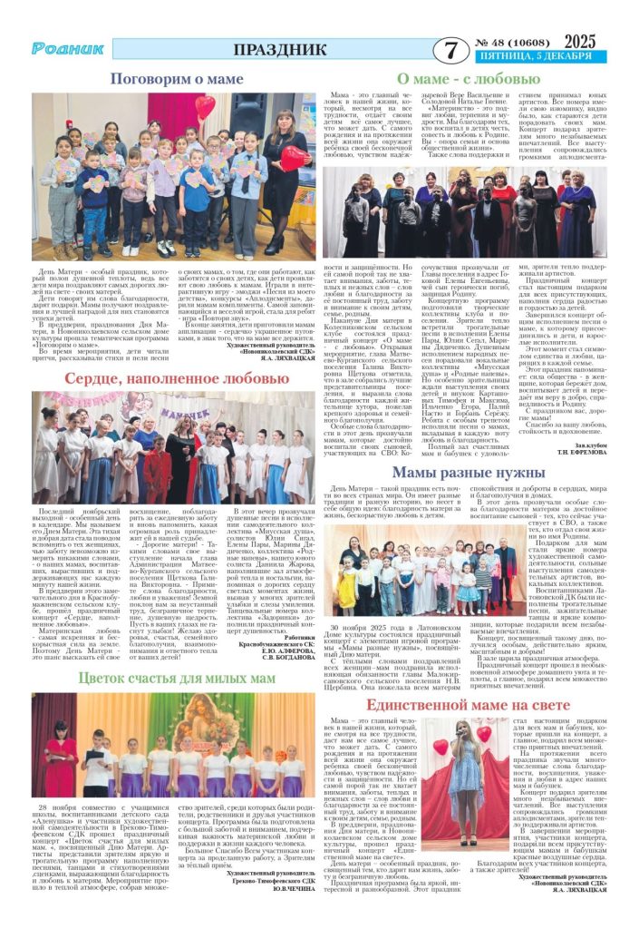 О маме с любовью… Праздничные мероприятия, прошедшие в Матвеево-Курганском районе, посвященные Дню матери. Стр. 7, 8 и 9.