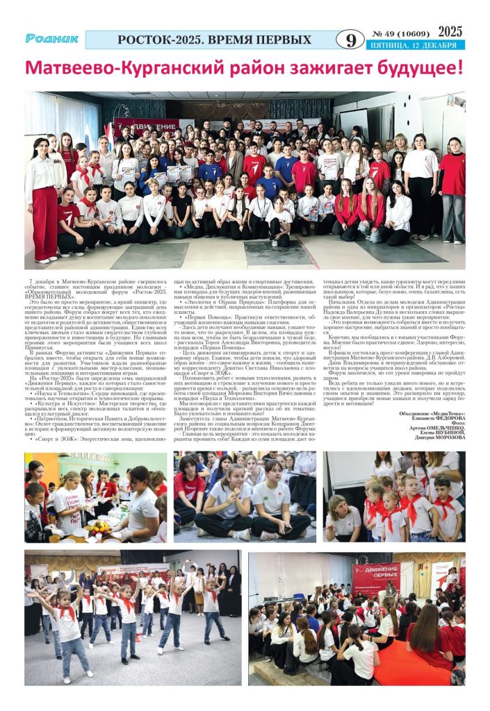 В Матвеево-Курганском районе прошло событие для молодежи — «Образовательный молодежный форум «Росток-2025. ВРЕМЯ ПЕРВЫХ». Стр. 9.