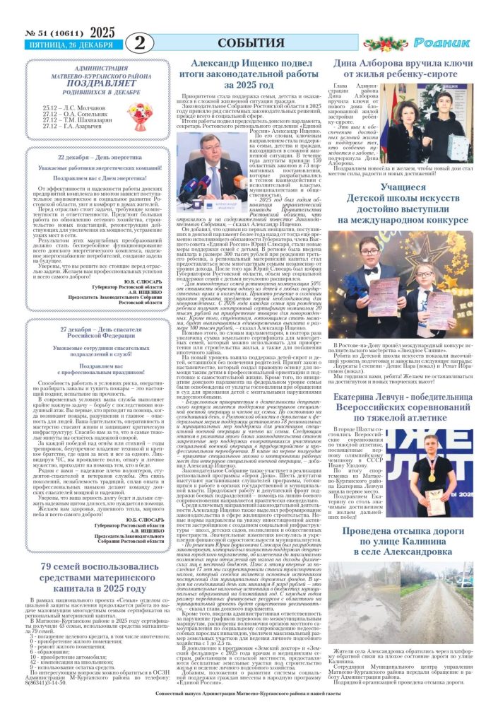 79 семей воспользовались средствами материнского капитала в 2025 году. Стр. 2.