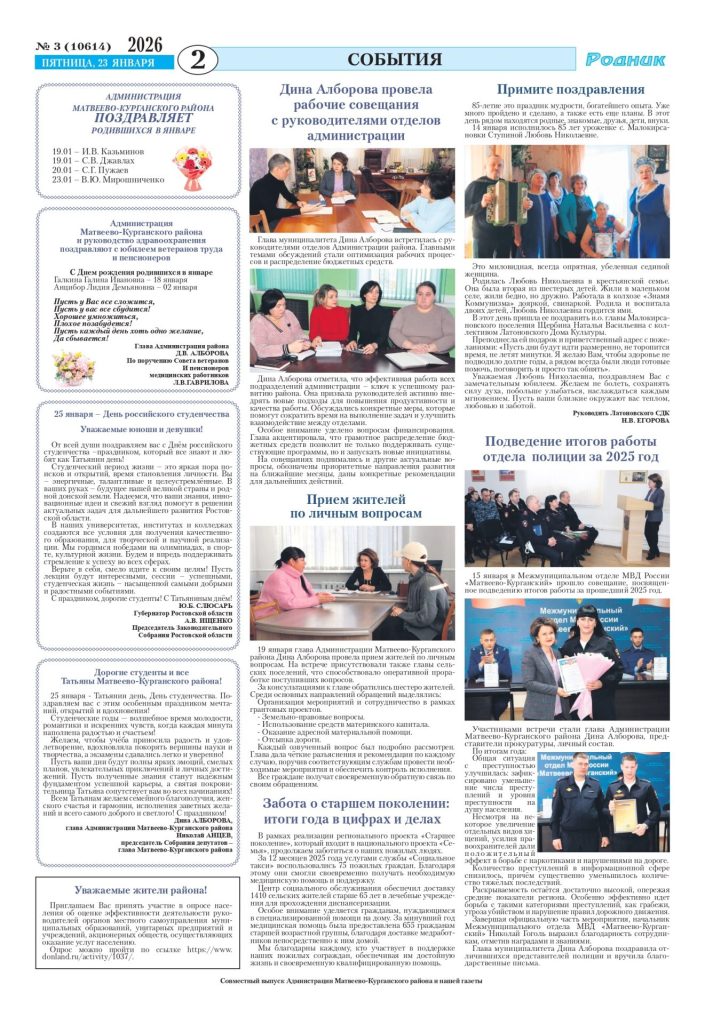 В Межмуниципальном отделе МВД России «Матвеево-Курганский» прошло совещание, посвященное подведению итогов работы за прошедший 2025 год. Стр. 2.