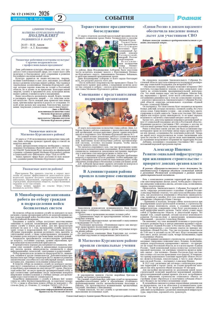 О главных событиях уходящей недели на странице Администрации Матвеево-Курганского района.