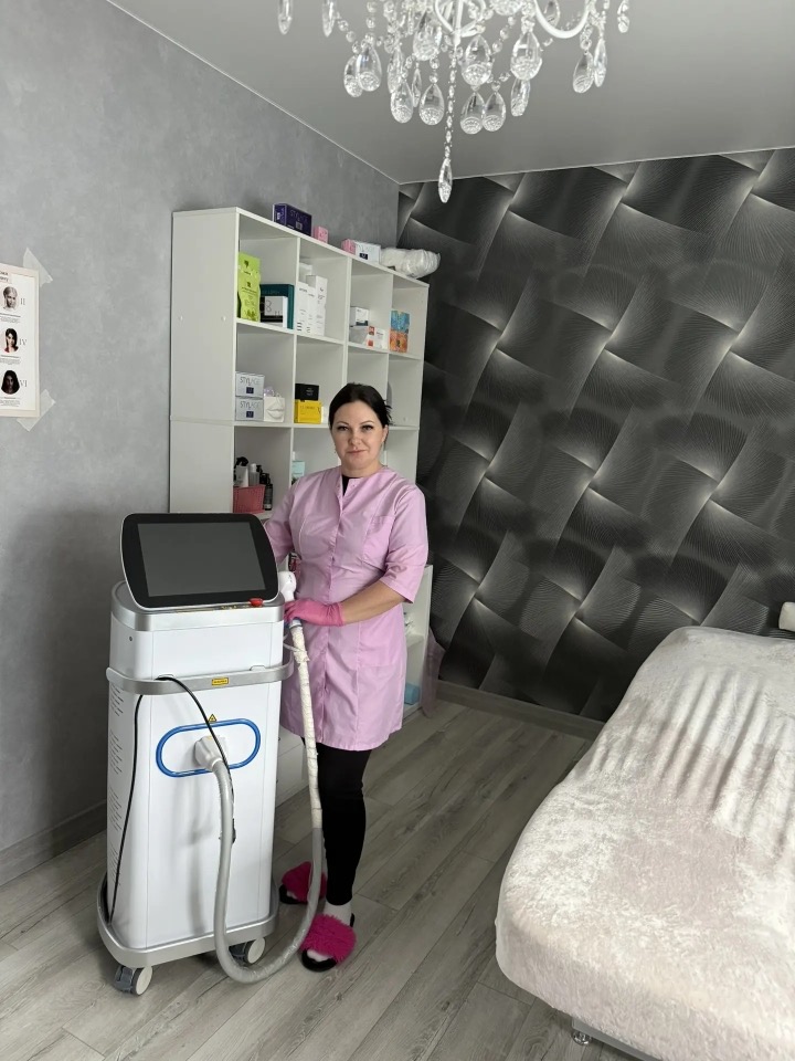 И если бы не поддержка моего мужа, то сама бы я не справилась. В мае 2024 года мне доставили диодный лазерный аппарат ADSS2000, а уже через несколько дней я начала работать с клиентами. Разумеется, сначала лазер испытала на себе.