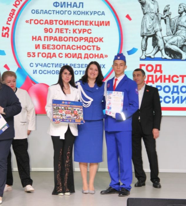 Когда на сцену пригласили нашего руководителя — советника директора Сигуту М.Ю., — это был момент настоящей гордости. Она получила БЛАГОДАРСТВЕННОЕ ПИСЬМО из рук начальника Управления Госавтоинспекции ГУ МВД России по Ростовской области — полковника полиции С.А. Сасина и ДИПЛОМ ПОБЕДИТЕЛЯ от председателя всероссийской организации «Юные инспекторы движения» Валентины Кульбицкой. Это признание её труда, её души, вложенной в каждого из ЮИДовцев.