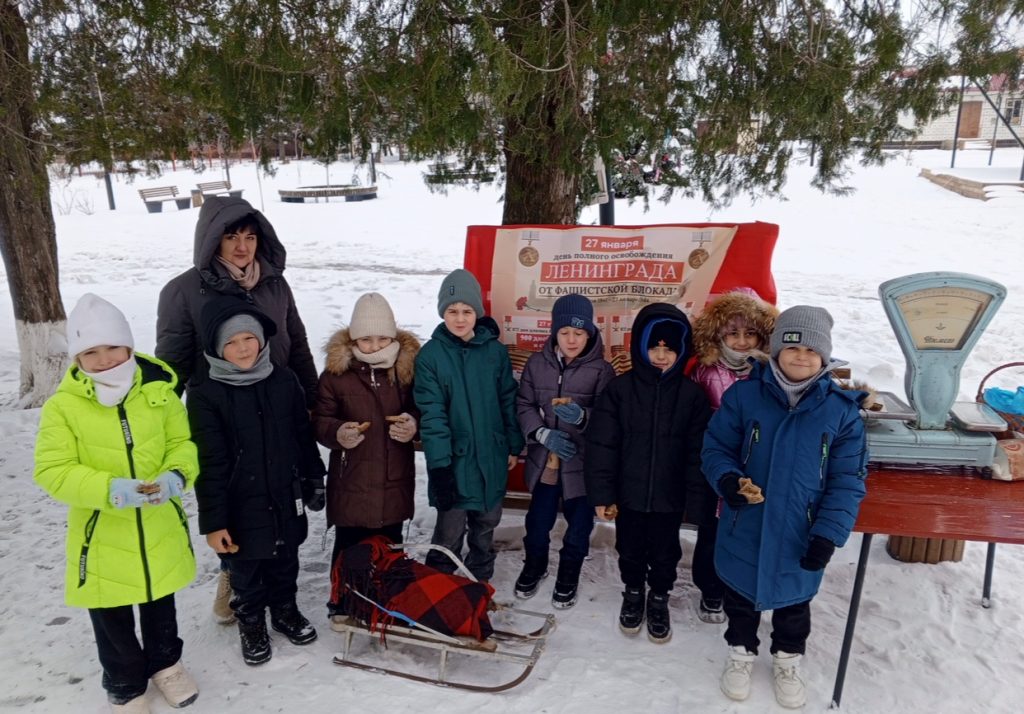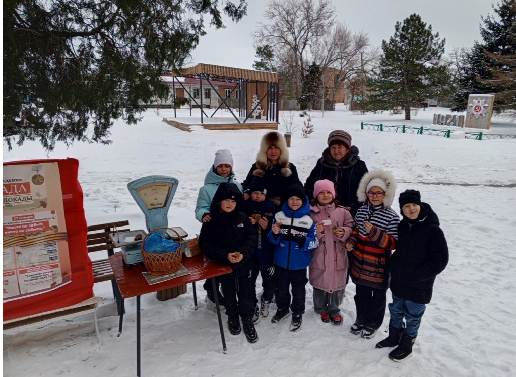 В рамках этой акции дети получили символический кусочек хлеба и карточки с информацией о различных фактах того времени.