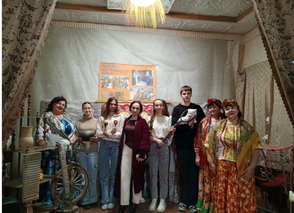«Знать историю своего народа — значит понимать, кто мы и откуда», — такими словами встретили ребят ведущие. Дальше началось самое интересное: ребята шагнули в воссозданную русскую избу, где каждый уголок дышал историей. Гостей встретили домотканые половики, кружевные салфетки, вышитые рушники с замысловатыми узорами. Кровать с подзором, прялка, рубель для глажки белья, коромысло — эти предметы, знакомые многим лишь по книгам, здесь можно было рассмотреть вблизи, потрогать и даже попробовать использовать.