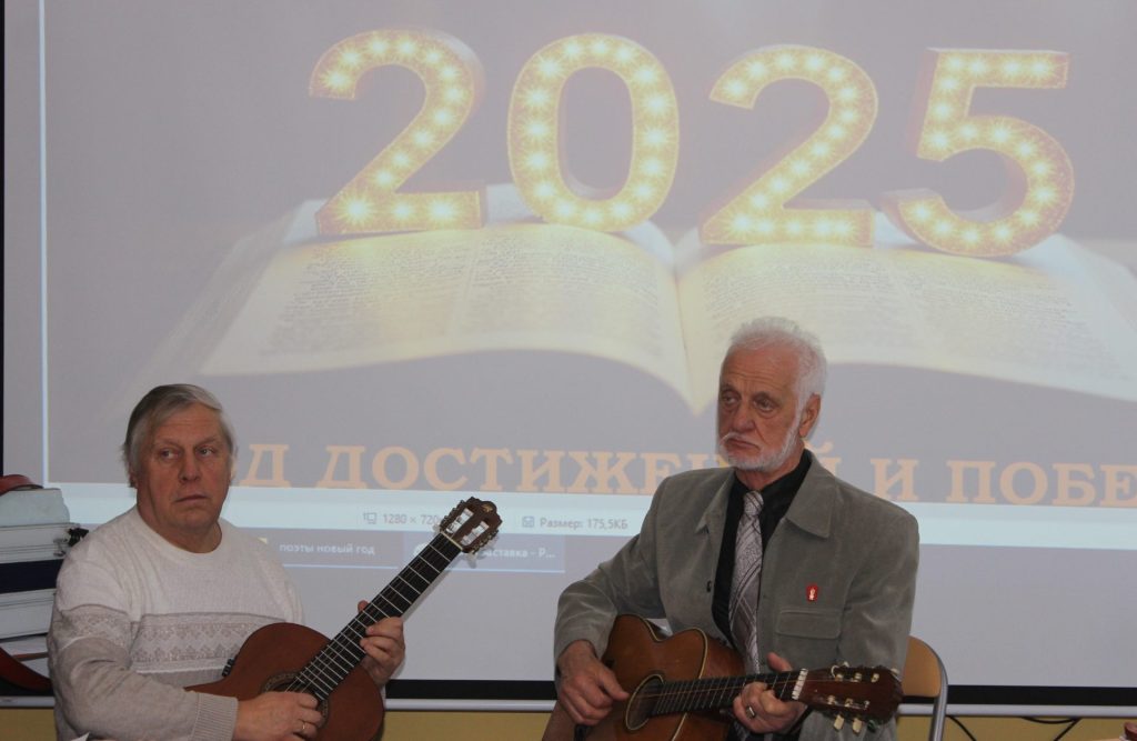 На встрече собрались писатели, поэты и барды — все те, кто наполняет жизнь красотой слова и мелодии. Уходящий год для нашего литературного клуба выдался понастоящему плодотворным:Владимир Николаевич Москаленко удостоен награды на Международном литературном конкурсе «Золотое перо Руси». Александр Иванович Иванченко и Игорь Юрьевич Лосев выпустили собственные книги. Особые слова благодарности прозвучали в адрес Людмилы Леонидовны Шиленко — почётного волонтёра, которая на протяжении всего года активно участвовала в сборе гуманитарной помощи, поддерживала словом бойцов в зоне специальной военной операции.