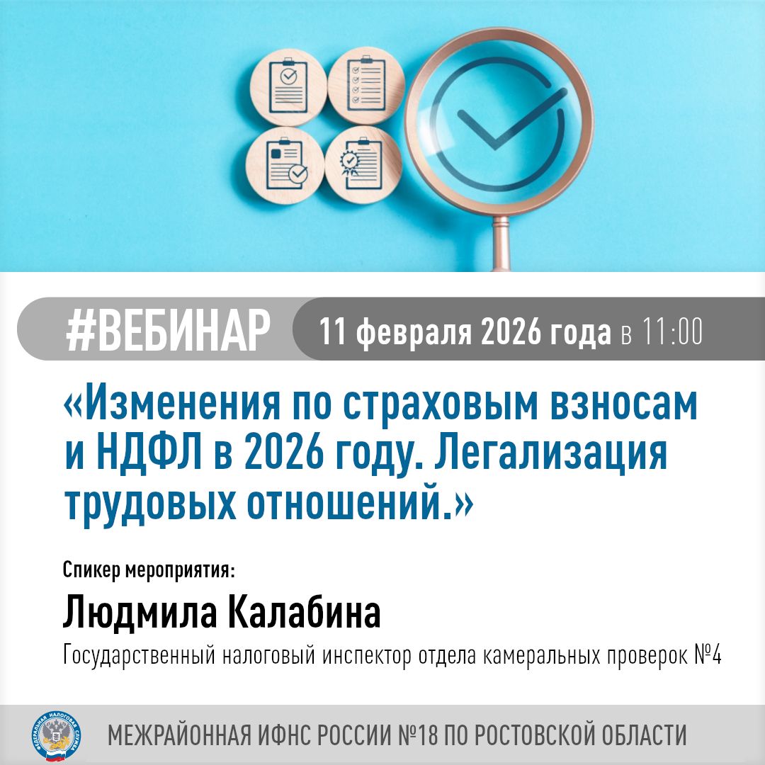 Приглашаем налогоплательщиков принять участие в вебинаре по теме «Изменения по страховым взносам и НДФЛ в 2026 году. Легализация трудовых отношений».