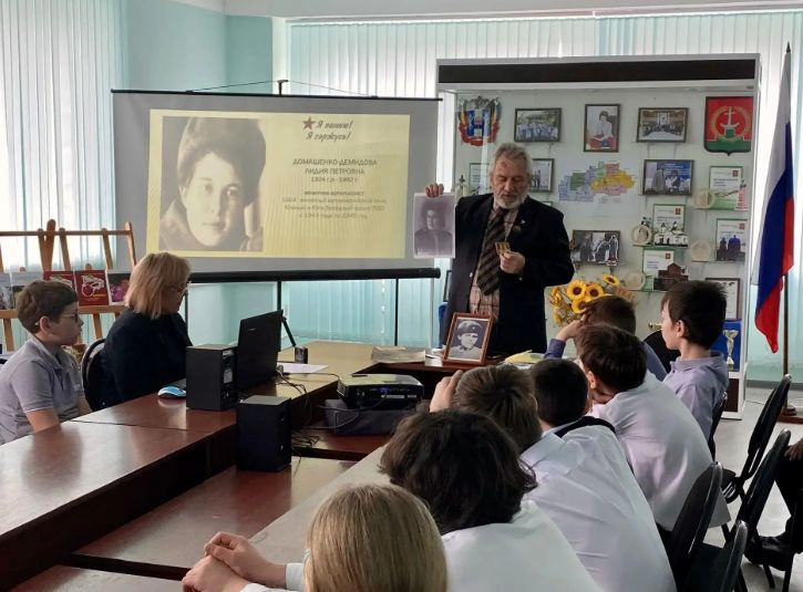С интересом рассматривая семейные фотографии А.И. Иванченко и письма военных лет, учащиеся прикоснулись к тому времени, когда их прадеды ценой собственной жизни ковали Победу.