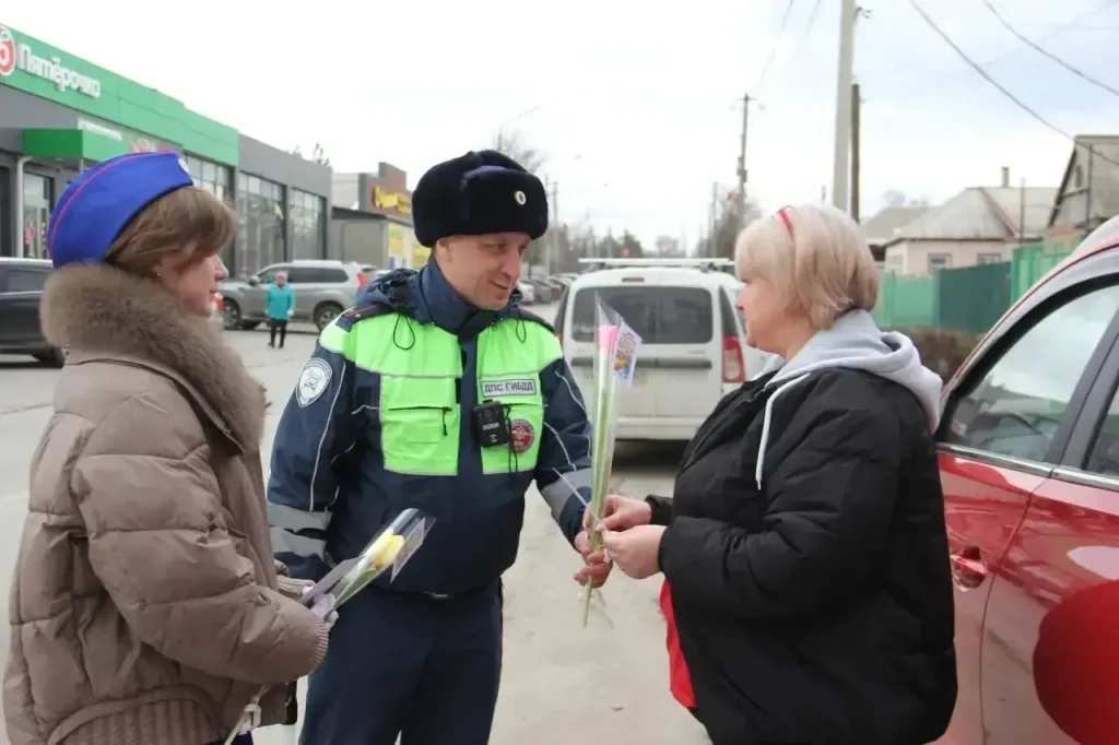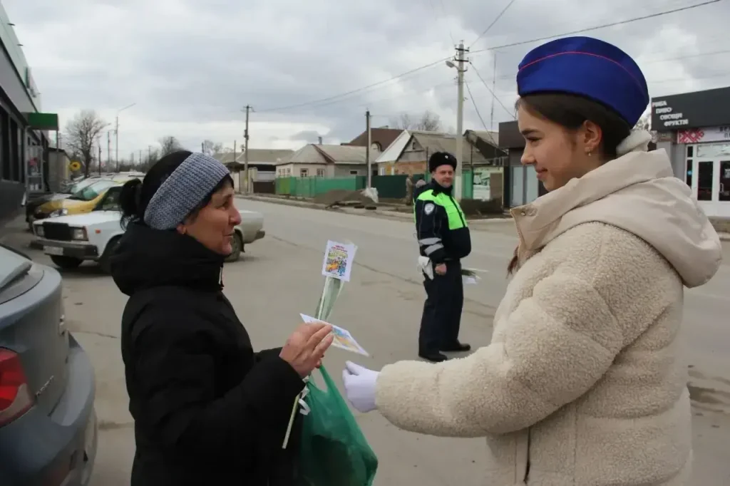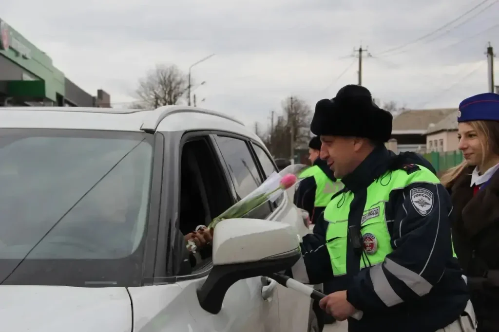 В преддверии празднования Международного женского дня 8 Марта сотрудники отделения Госавтоинспекции МО МВД России «Матвеево-Курганский» инспектор ДПС лейтенант полиции Александр Асмолов и инспектор ДПС лейтенант полиции Андрей Федоренко совместно с отрядом ЮИД «Автостоп» Матвеево-Курганской сош № 1 провели акцию «Цветы для автоледи».