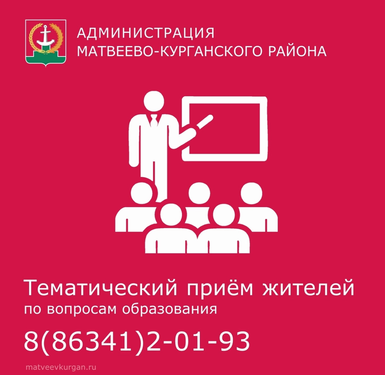 26 февраля 2026 года в 9-00 в общественной приёмной губернатора Ростовской области состоится тематический приём граждан главой Администрации Матвеево-Курганского района Диной Алборовой по вопросам образования.