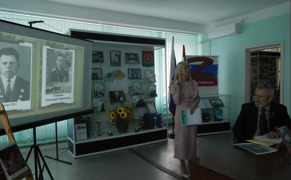 Начали свою экскурсию по музею с зала Боевой Славы, где директор музея Дианова Наталья Евгеньевна познакомила посетителей музея с основными событиями Миус-фронта и экспонатами, связанными с событиями 1941-1943 годов на территории нашего района. Наталья Евгеньевна обратила особое внимание на то, что за музейными предметами стоят судьбы солдат — моряков, танкистов, лётчиков и пехотинцев, чьё мужество, сила духа, смелость и решительность стали для