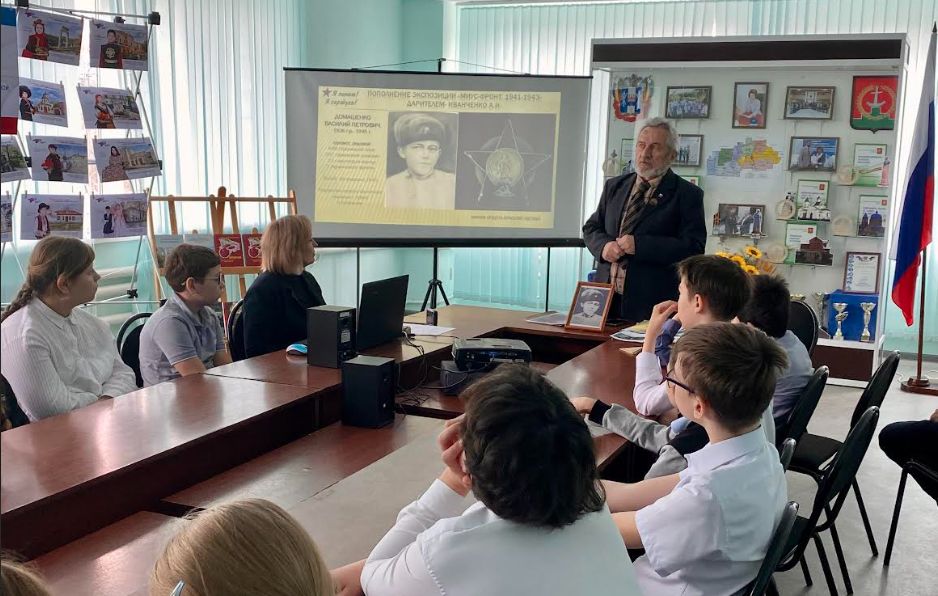На экскурсии присутствовал почётный гость — щедрый даритель музея Александр Иванович Иванченко. Неравнодушный к жизни района человек, сохраняющий память, даря бесценные (с точки зрения истории), предметы. Александр Иванович посвятил детей в историю своей семьи, познакомил подростков со своим творчеством, главной книгой которого стал роман