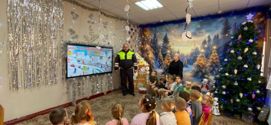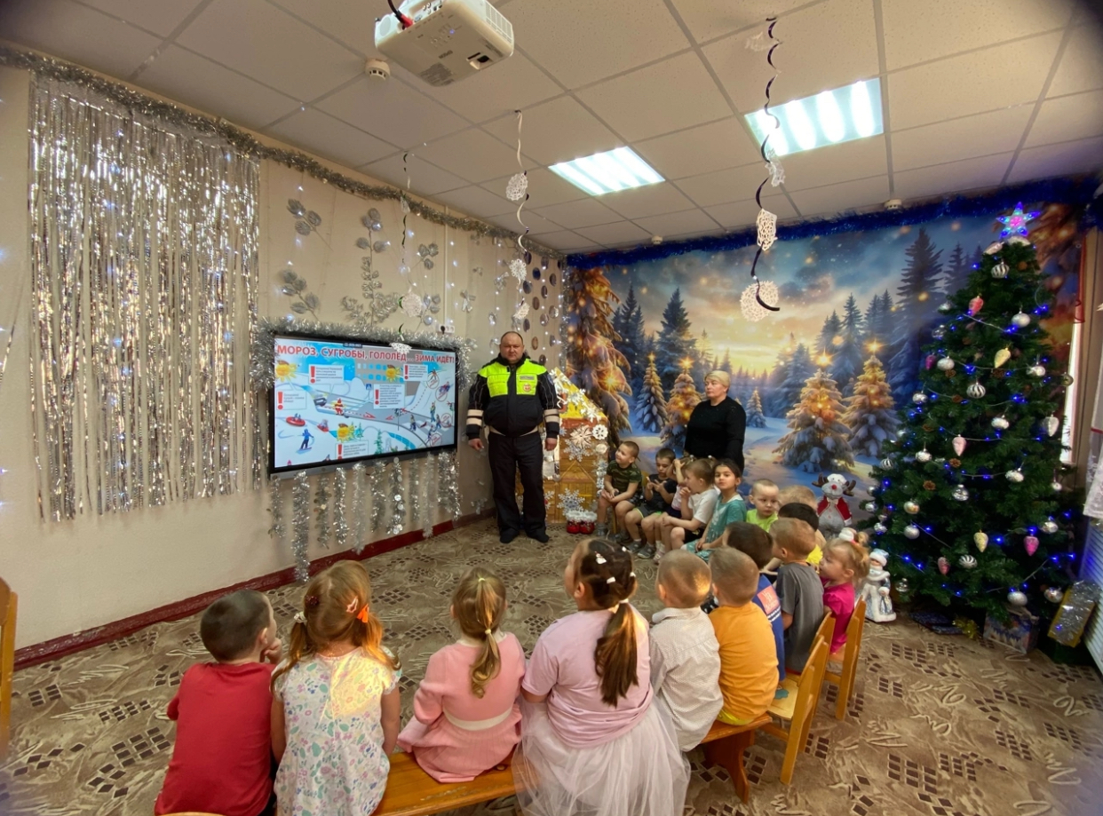 В преддверии новогодних праздников в детском саду «Теремок» состоялась встреча воспитанников с инспектором ДПС отделения госавтоинспекции лейтенантом полиции Бокаревым Максимом Михайловичем. Он провел профилактическую беседу о Правилах безопасного поведения на дороге в зимний период.