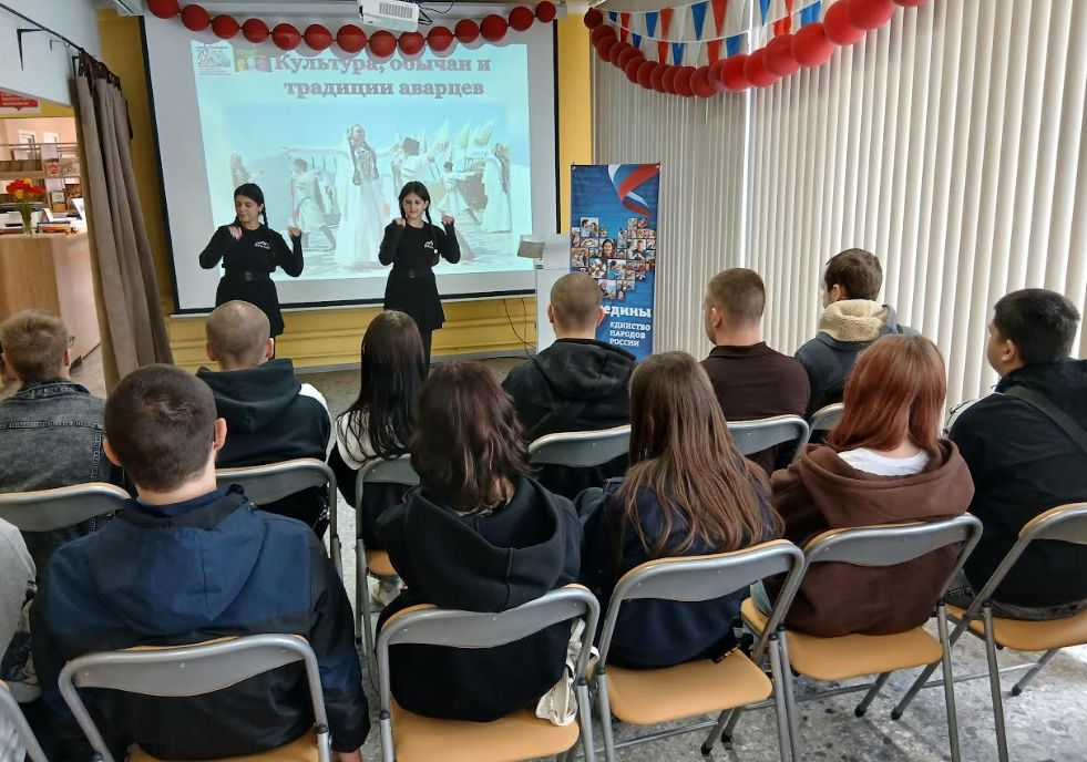 Чтобы еще глубже погрузить ребят в тему, были показаны видеоролики о местных творческих коллективах. Они продемонстрировали богатство и красоту культур нашего края, позволив студентам лучше узнать о народах, живущих рядом.