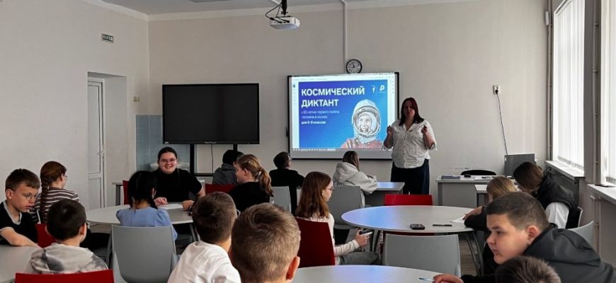 В Матвеево-Курганской сош №2 для учащихся 5а и 5г классов советником директора по воспитанию Тарасенко О.В. был проведен тематический диктант, разработанный участниками Федерального Совета Первых, посвященный 65-летию полета Ю.А. Гагарина в космос, истории космонавтики, биографиям космонавтов и работе МКС.
