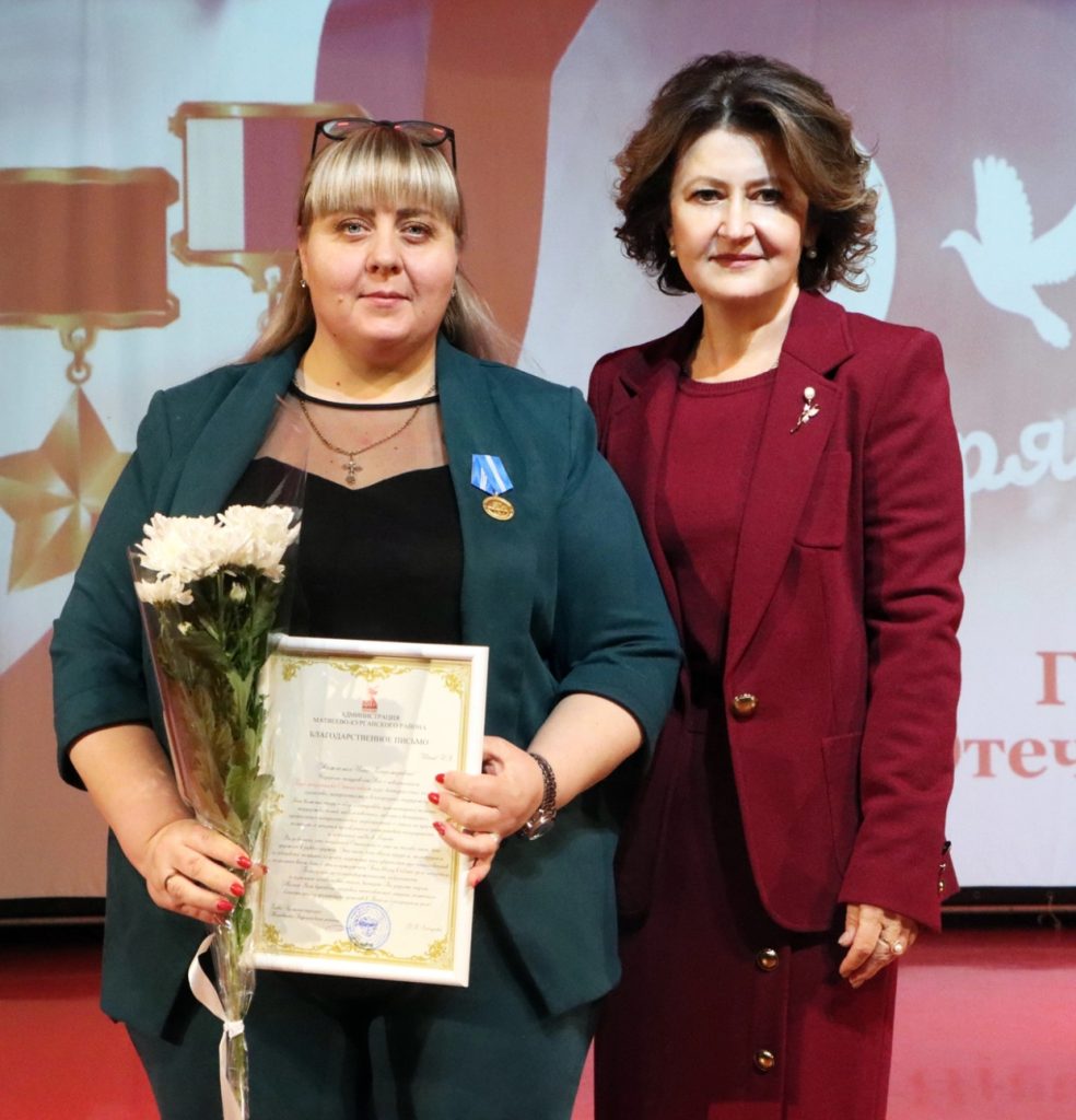 С Днём Героев Отечества собравшихся поздравила глава Администрации района Дина Алборова.