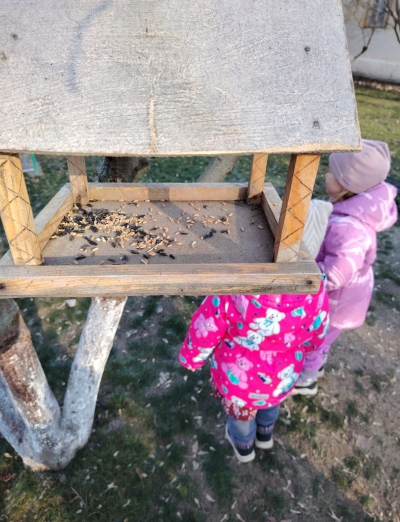 Наши малыши проявляют искреннюю заботу о птицах в суровые зимние дни. Они регулярно наполняют кормушки свежими зернами, обеспечивая питание нашим пернатым соседям.