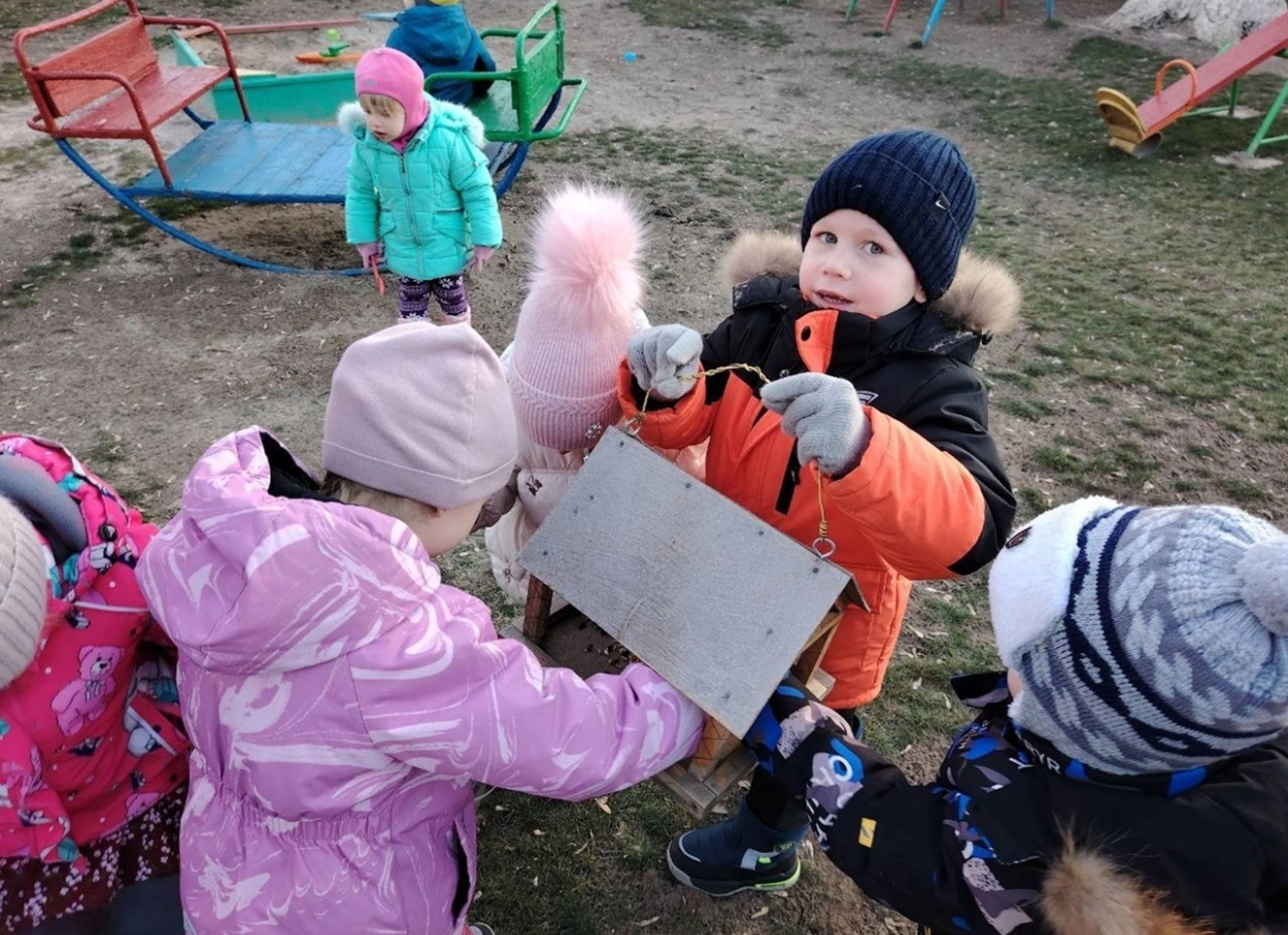 Наши малыши проявляют искреннюю заботу о птицах в суровые зимние дни. Они регулярно наполняют кормушки свежими зернами, обеспечивая питание нашим пернатым соседям.