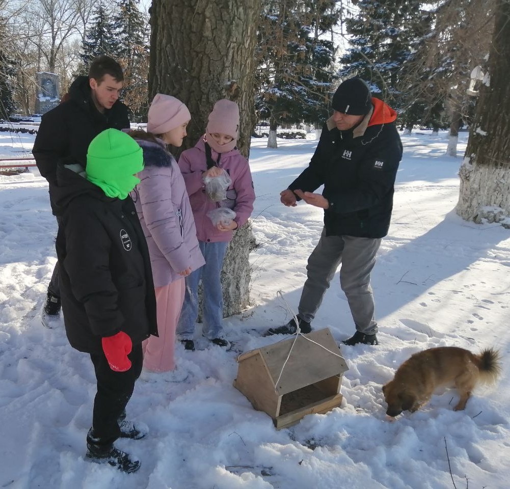 На улице сейчас стоит очень низкая температура, и помощь пернатым как нельзя кстати. Понимая это, ребята решили наполнить все кормушки зернышками и салом, поздравив своих маленьких пернатых друзей с праздником. Но на этом их инициатива не закончилась.