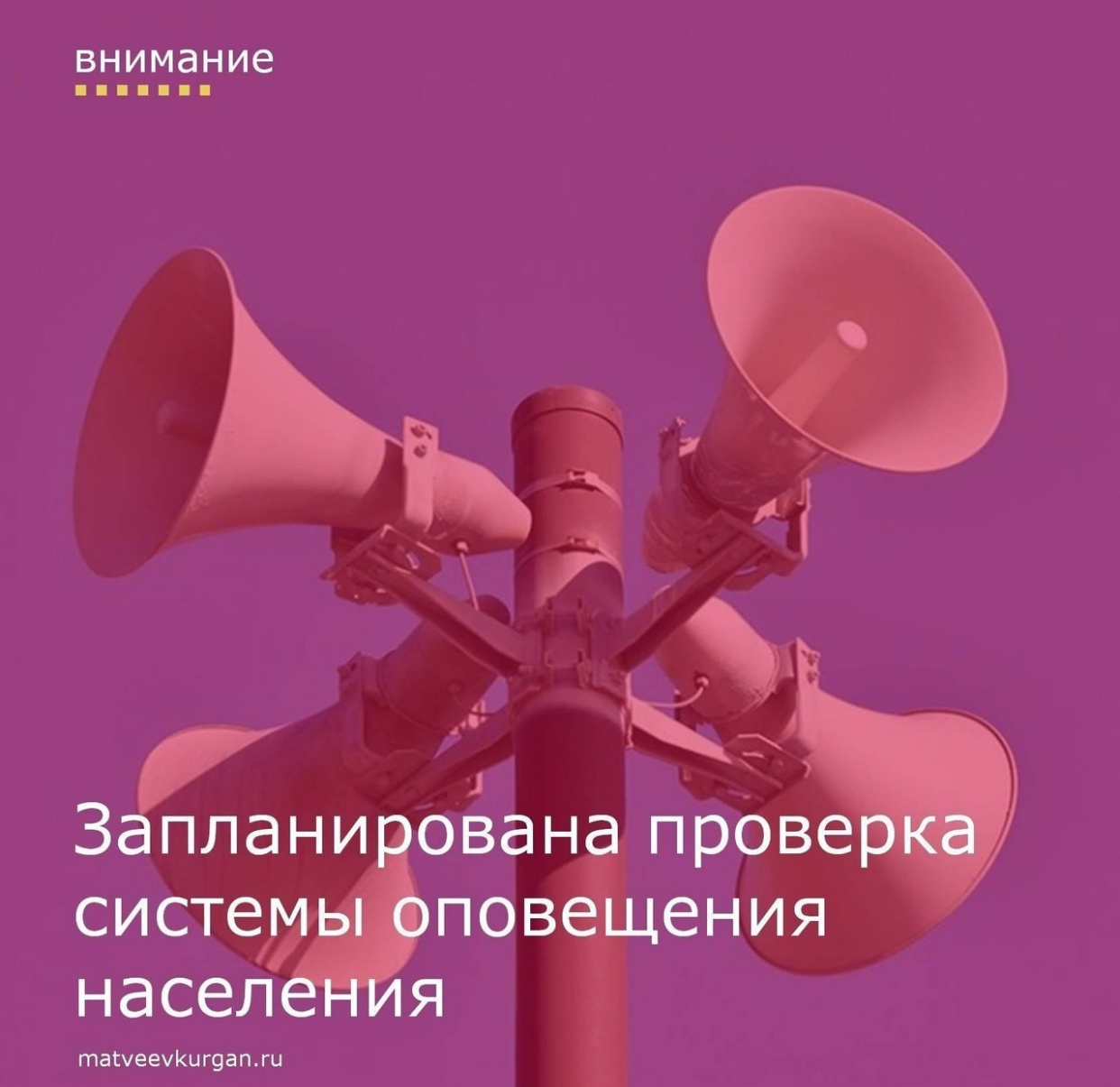 В Матвеево-Курганском районе 4 марта 2026 года планируется проверка системы оповещения населения района с включением оконечных устройств оповещения, доведением проверочных сигналов и информации до населения.